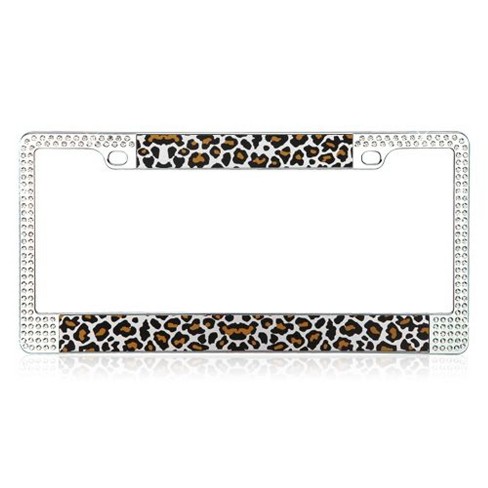 Mybat Brown Leopard Design License Plate Frames With Double Row Shining White Crystals Target
